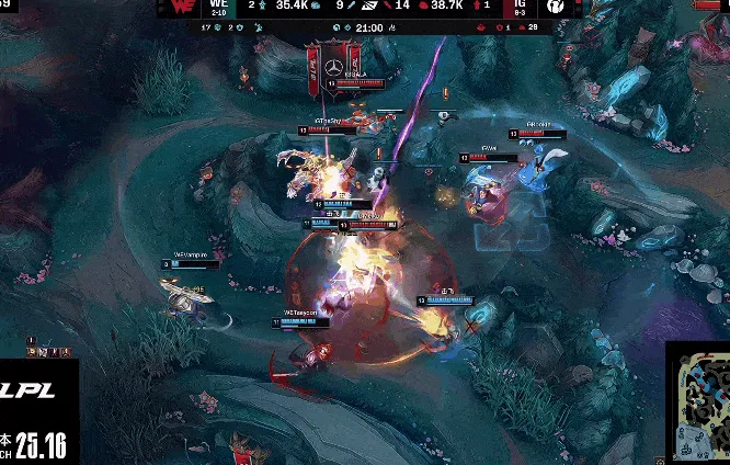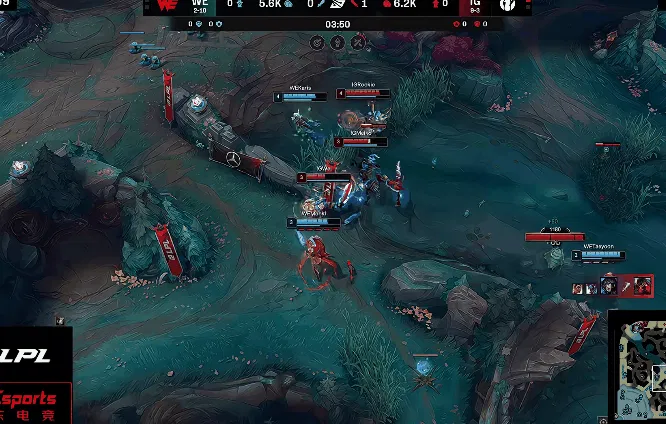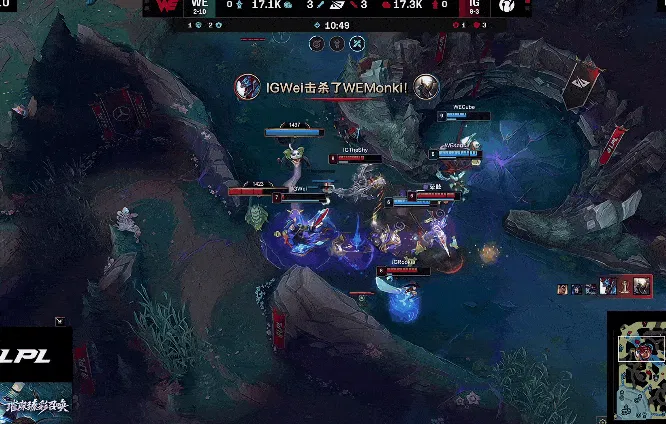 10分钟,双方野区爆发大混战,最终WE打出2换3团战小赚